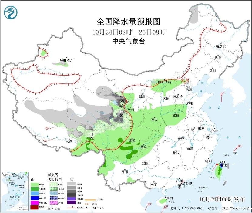 昨日,雨雪天气集中在青藏高原东部,气象监测显示,青海东部和南部、川西高原北部、西藏中部、甘肃中部等地出现小到中雪或雨夹雪,局地大雪,青海果洛局地暴雪。预计24日至26日,青藏高原东部的雨雪天气持续,青海大部、西藏北部和东部、川西高原中北部、甘肃中部和南部等地有小到中雪(雨)或雨夹雪,青海东部和南部、甘肃中部、西藏东北部、川西高原北部等地部分地区有大雪,局地暴雪或大暴雪。今天是青海东部一带降雪最强的一天。