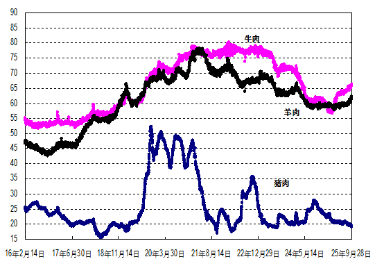 1.牛羊肉和鸡蛋价格持续上涨,猪肉价格连续下跌。猪肉批发市场周均价每公斤19.31元,环比跌1.2%,已连续3周小幅下跌,累计跌幅2.3%,同比低25.9%;牛肉批发市场周均价每公斤65.97元,环比涨0.6%,已连续9周小幅上涨,累计涨幅3.5%,同比高7.1%;羊肉批发市场周均价每公斤61.81元,环比涨1.2%,已连续7周小幅上涨,累计涨幅3.8%,同比高4.9%;白条鸡批发市场周均价每公斤17.63元,环比涨0.9%,同比低1.5%。鸡蛋批发市场周均价每公斤8.40元,环比涨2.6%,已连续4周小幅上涨,累计涨幅10.8%,同比低21.4%。
