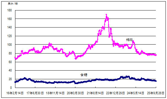 1.多种大宗农产品价格下跌。美国芝加哥商品交易所豆油、大豆和小麦最近期货合约收盘周均价每吨分别为1090美元、372美元和191美元,环比分别跌4%、3%和1%,同比分别高14%、低4%和低11%;国际棉花价格指数(SM级)每磅75.71美分(每吨1669美元),环比跌2%,同比低30%;国际糖料理事会原糖周均价每磅15.76美分(每吨347美元),环比跌2%,同比低30%;马来西亚棕榈油荷兰鹿特丹港到岸周均价每吨1345美元,环比跌1%,同比高11%;泰国100%B级和5%破碎率大米曼谷离岸周均价每吨分别为390美元和374美元,环比均跌1%,同比分别低34%和35%。