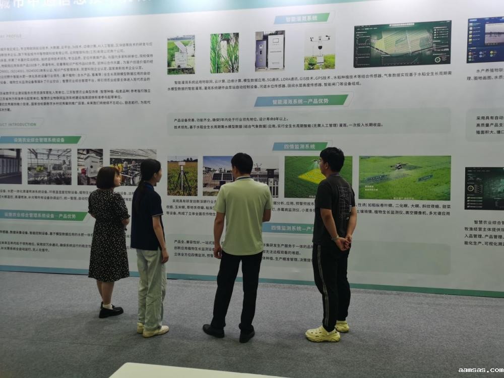 参观者在智能灌溉泵站控制系统解决方案展示墙前驻足观看 中通信息供图